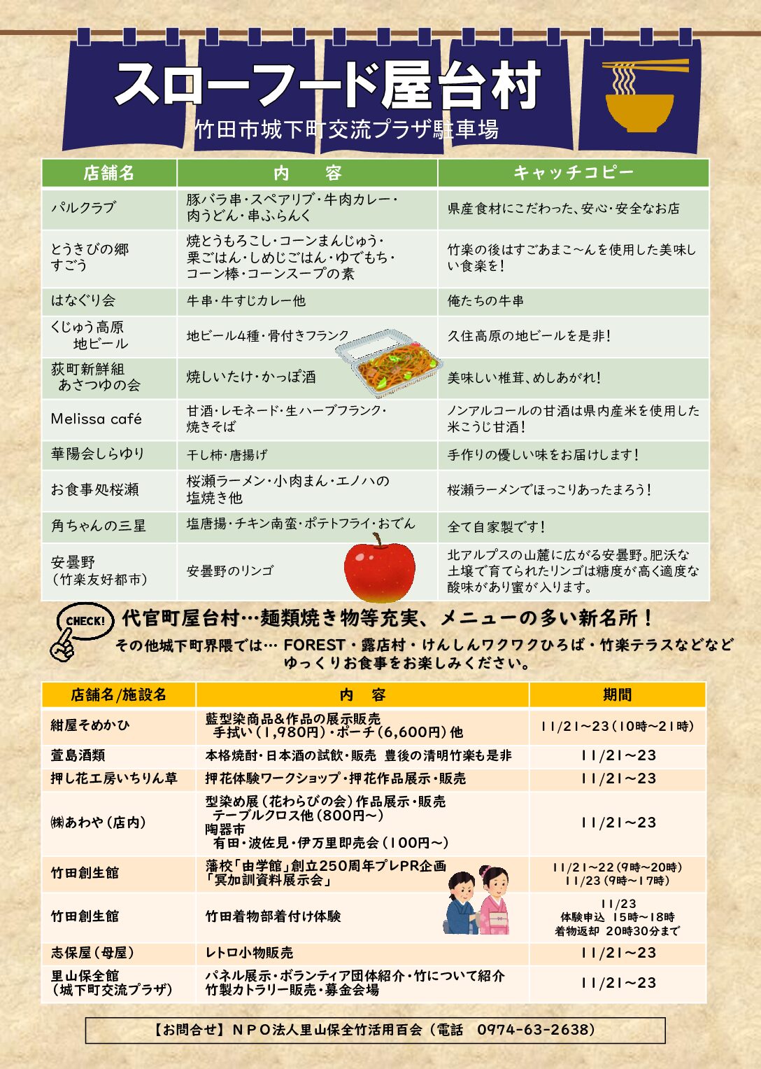 2025/11/21㈮~11/23㈰『第26回たけた竹灯籠「竹楽」』開催されます。城下町交流プラザでは以下が開設されます。 ■スローフード屋台村 ■里山保全館ギャラリー ■総合案内所(⚠お困りごとはコチラへ) ■救急ス […]