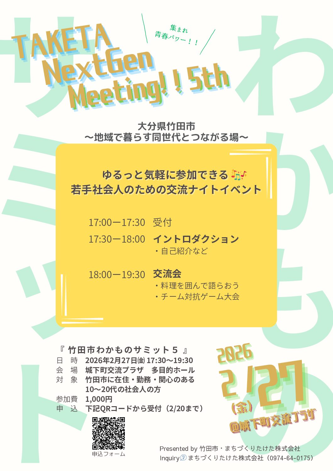 【日時】 2026年2月22日(日) 11:00~17:00頃【場所】竹田市城下町交流プラザ【内容】キッチンカー9店舗 ・大分とりてん防衛隊(とり天) ・K-TAKO(たこ焼き) ・sappuye […]